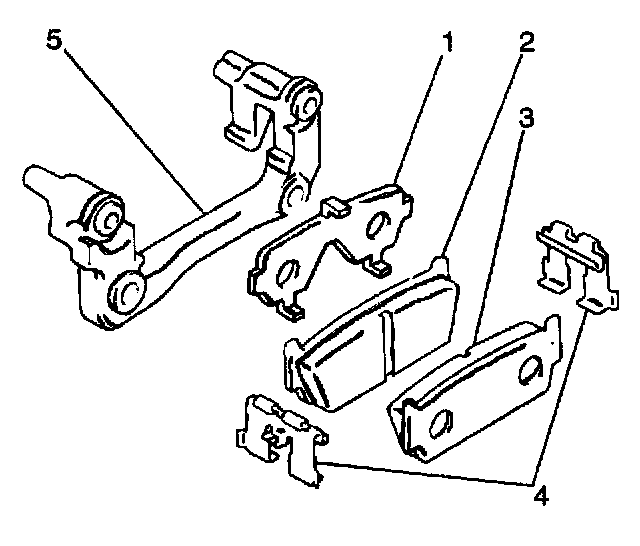 5. Remove the caliper assembly (4) from the caliper bracket. Suspend the caliper assembly with wire in order to prevent damage to the brake hose.