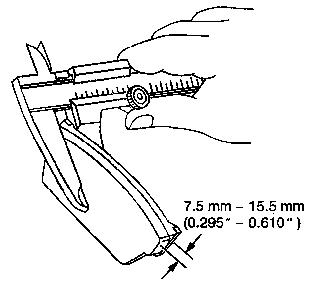 2. If the thickness of the pad and the plate is less than the minimum specification, replace the pads.