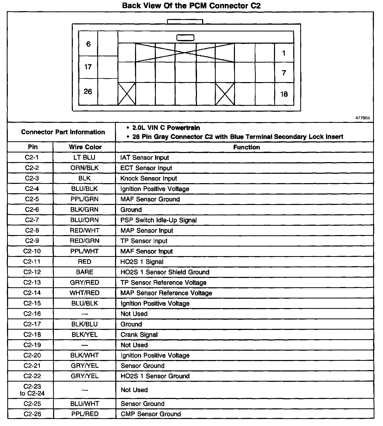 Back View Of The PCM Connector C2: