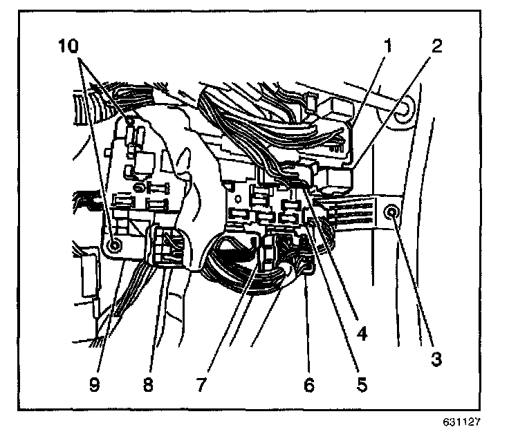 6. Install the bracket that contains the fuel pump8relay and the main relay to the left front side of the junction block (9).