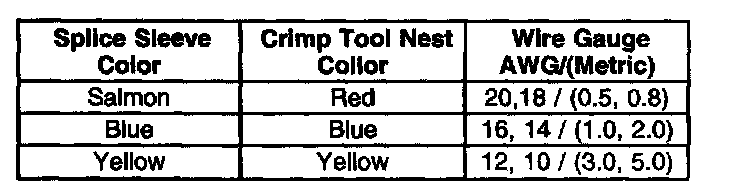 5. Select the proper splice sleeve (2) and the required crimp nest tool, refer to the Crimp and Seal Splice Table.