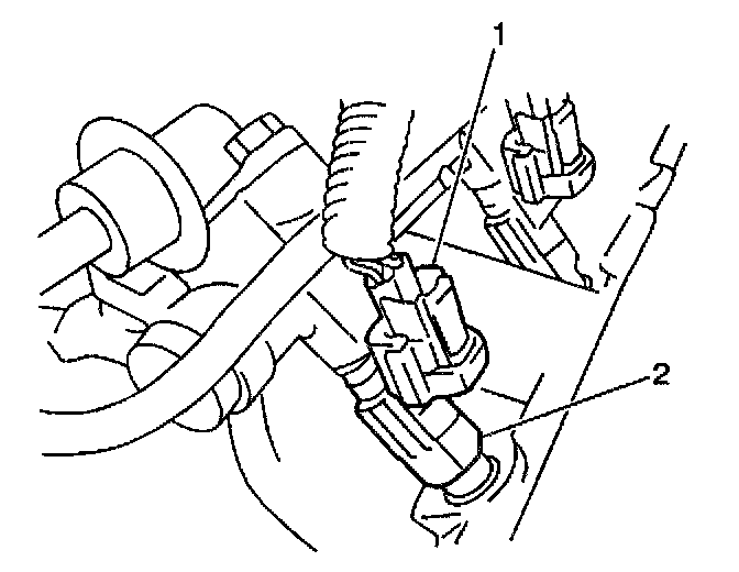 2. Disconnect the electrical connector (1) from the fuel injector (2).