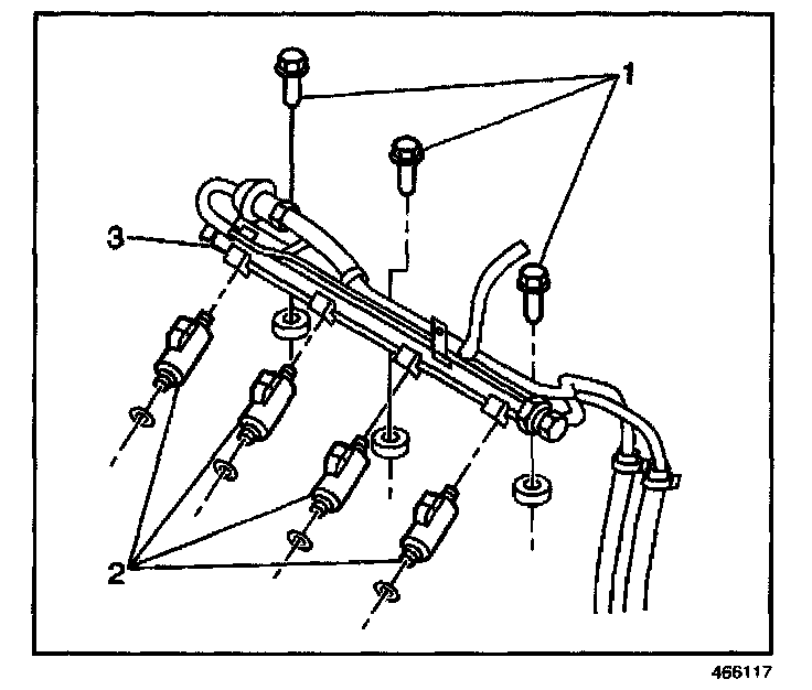 3. Install the fuel rail (3) to the intake manifold.