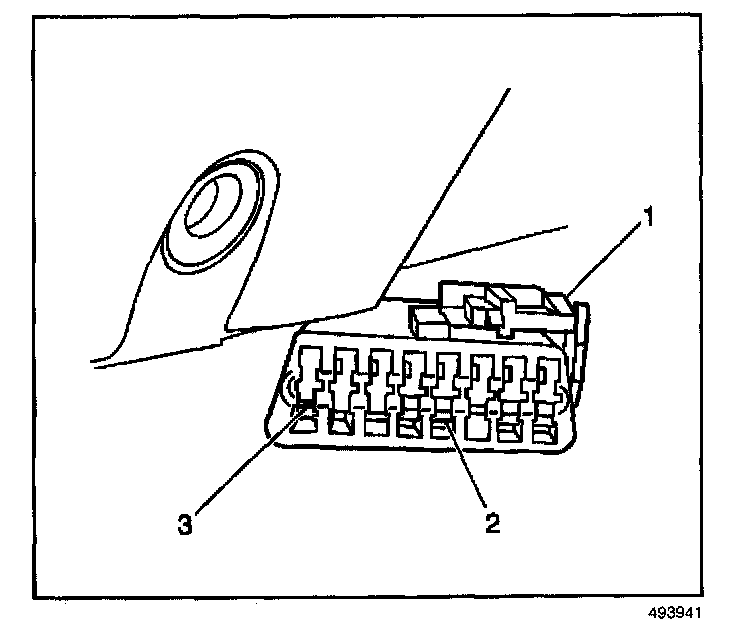 1. Set the receiver to the reprogramming mode by installing a 5 amp fused jumper wire from cavity 8 (3) to cavity 4 (2) of the data link connector (1). The door locks will lock and unlock once to indicate you are in the reprogramming mode.