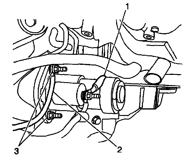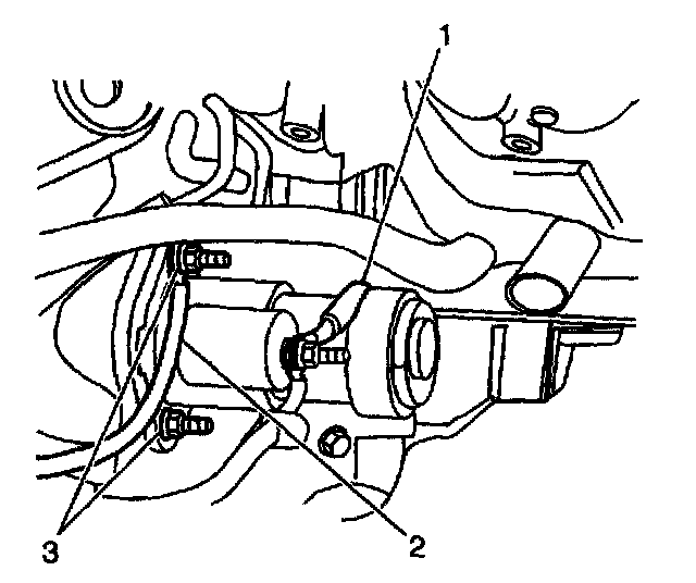 8. Remove the upper starter bolts (3) and the starter nuts.
