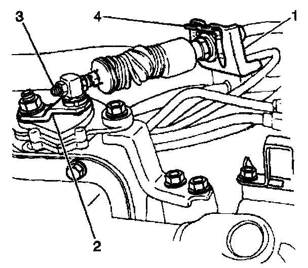 20. Install the shift cable and retainer (4) to the cable (3) bracket (1).