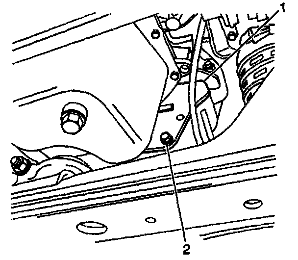 12. Install the flywheel inspection cover plate (1) and the bolts (2).