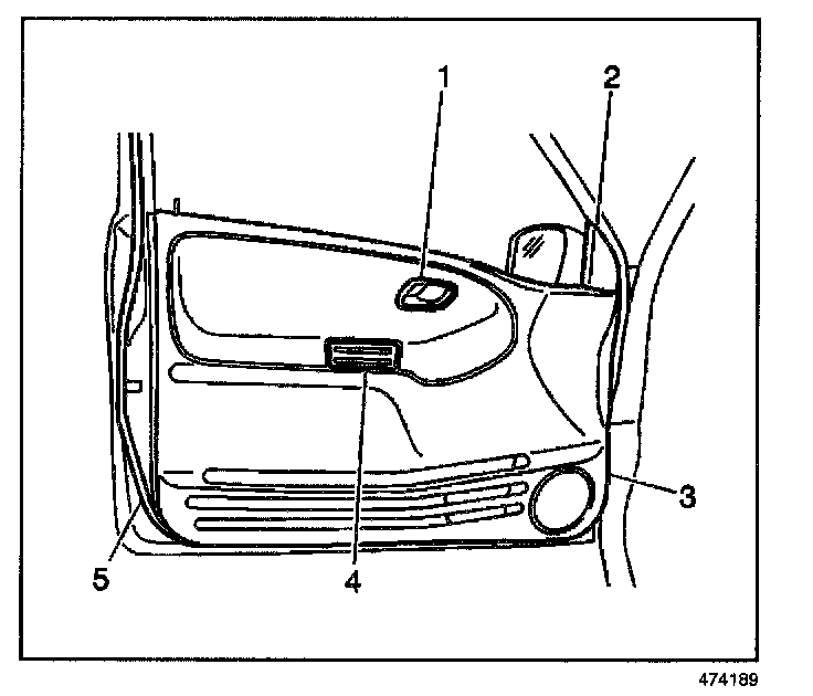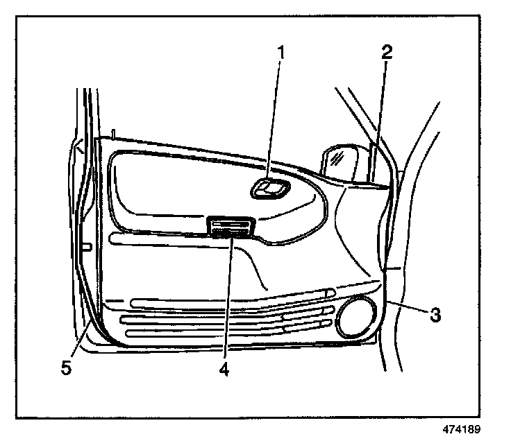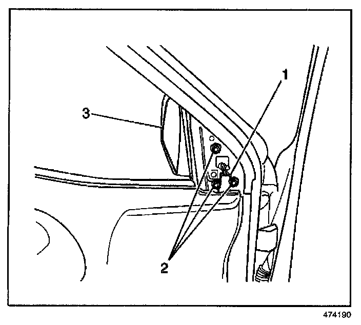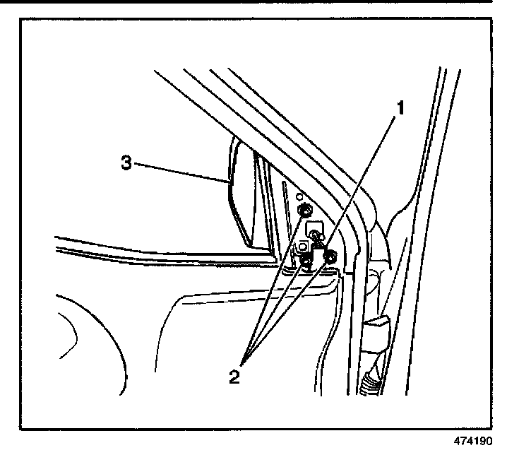 2. Remove the 3 bolts (2) and outside rearview mirror (3) from the door.