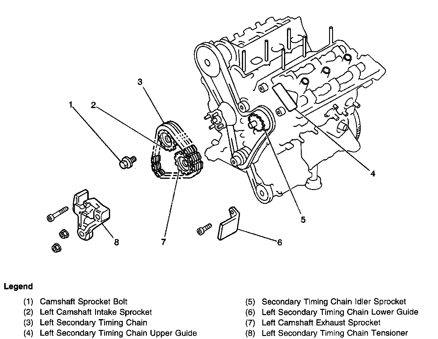 Left Secondary Timing Chain and Tensioner
