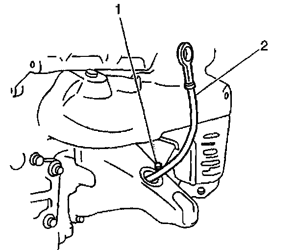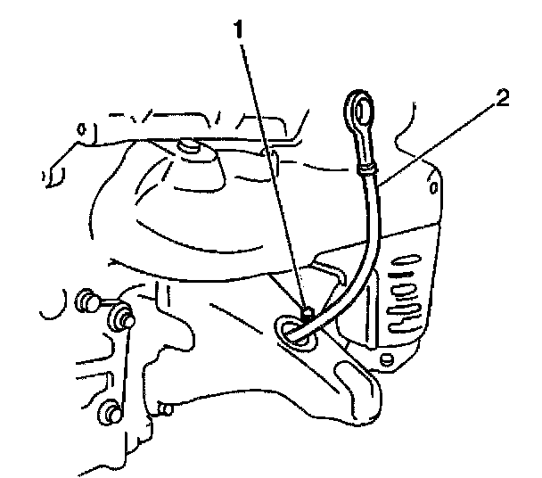 18. Remove the 1 bolt (1) and the engine oil level indicator and tube (2).