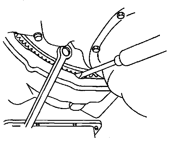 11. Install the torque converter bolts. Use a screwdriver in order to lock the flywheel.