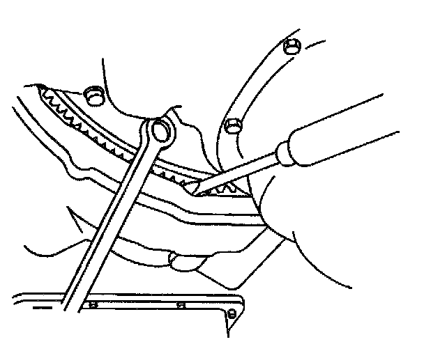 Notice: Do not apply an excessive amount of sealant to the flywheel retaining bolt threads. Applying too much sealant will result in the sealant overflowing the bolt seat. This could cause the bolt to break loose during vehicle operation.