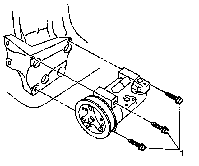 34. Remove the 3 bolts (1) and the A/C compressor, if equipped, from its bracket and position aside.