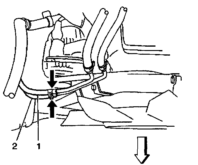 - The heater hose (5) from the water outlet cap