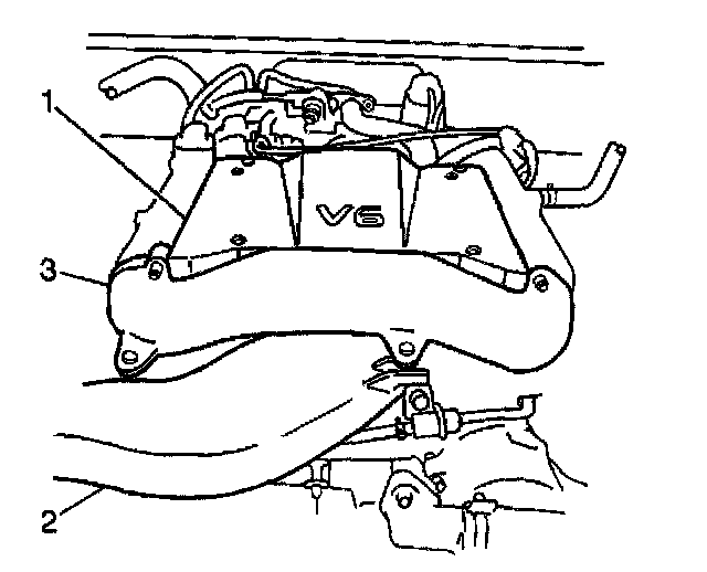 17. Remove the air cleaner upper case, the intake air hose, the intake air pipe (2) and the surge tank pipe (3) as an assembly.