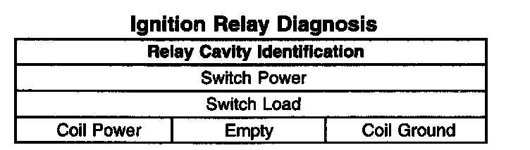 Use the above relay cavity table in order to locate the correct cavities to probe during diagnosis. The table layout corresponds to the cavity layout of the relay block.