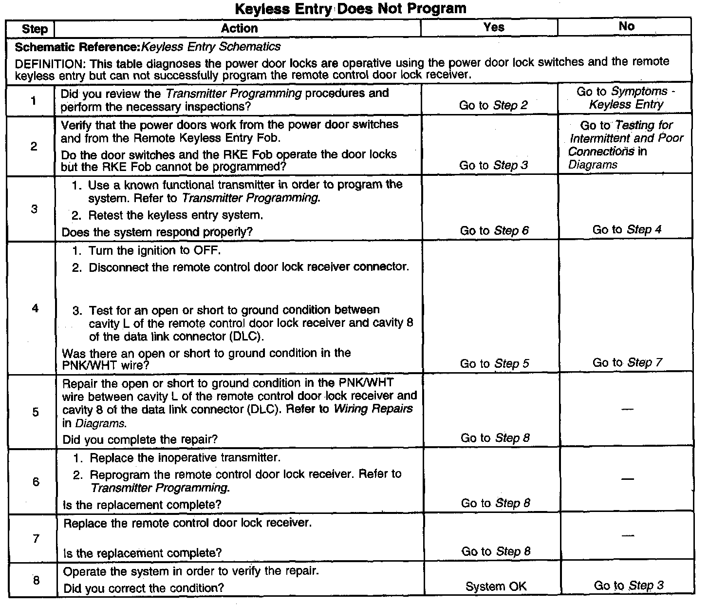 Keyless Entry Does Not Program