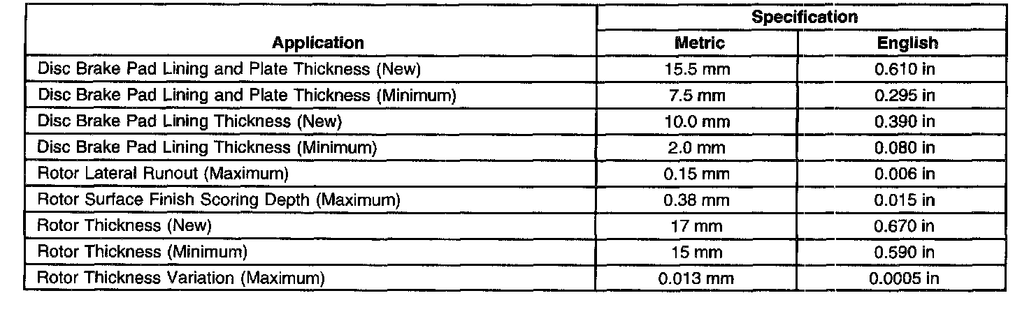 Disc Brake Component Specifications
