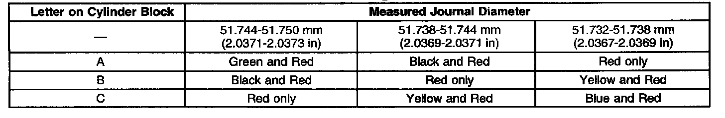 Undersize Main Bearing Selection Table