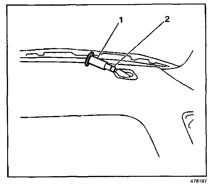 1. Using a taped flat bladed tool, gently pry the ambient light sensor (2) from the upper right IP mounting bolt trim cover (1).
