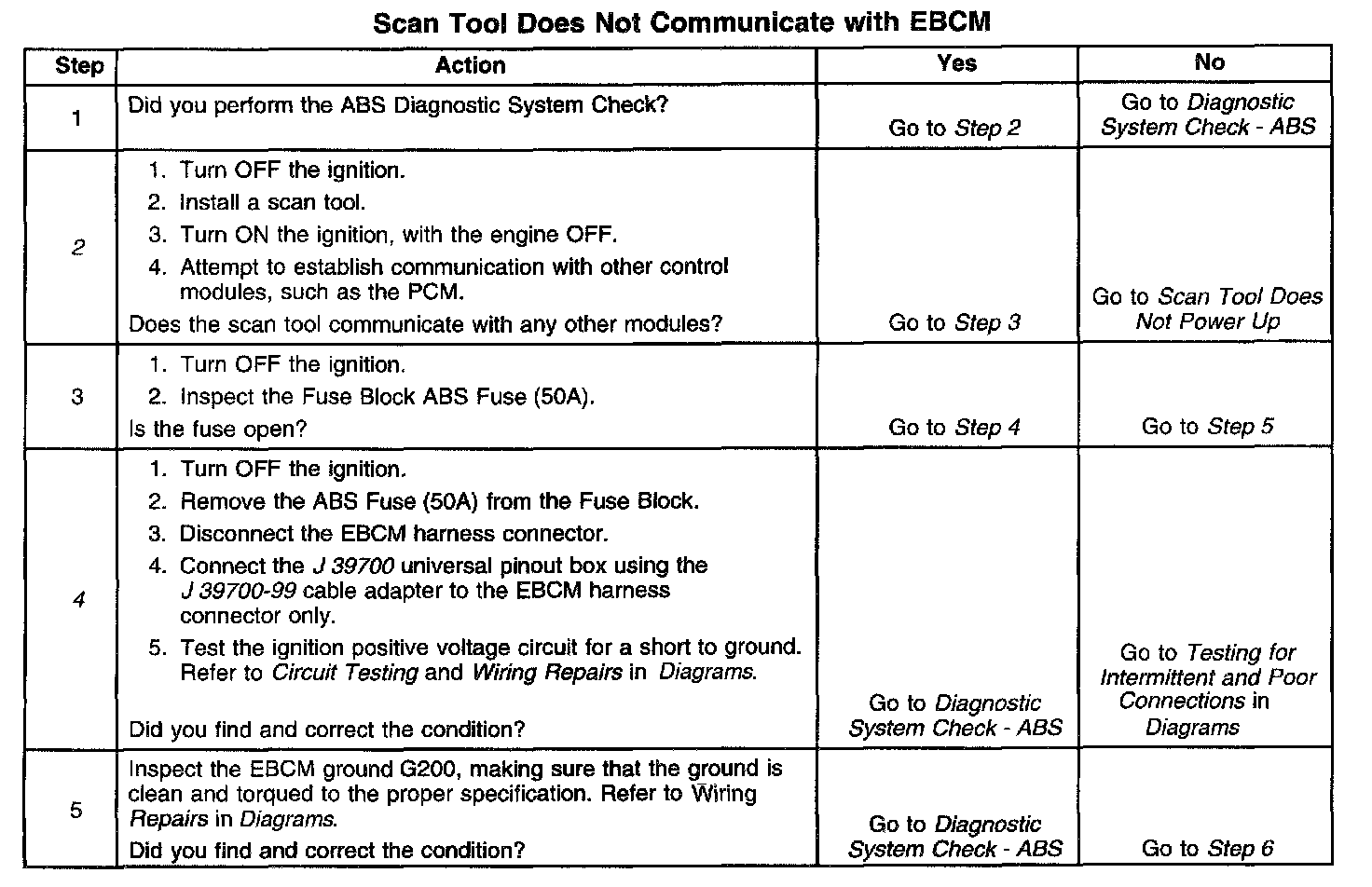 Scan Tool Does Not Communicate With EBCM
