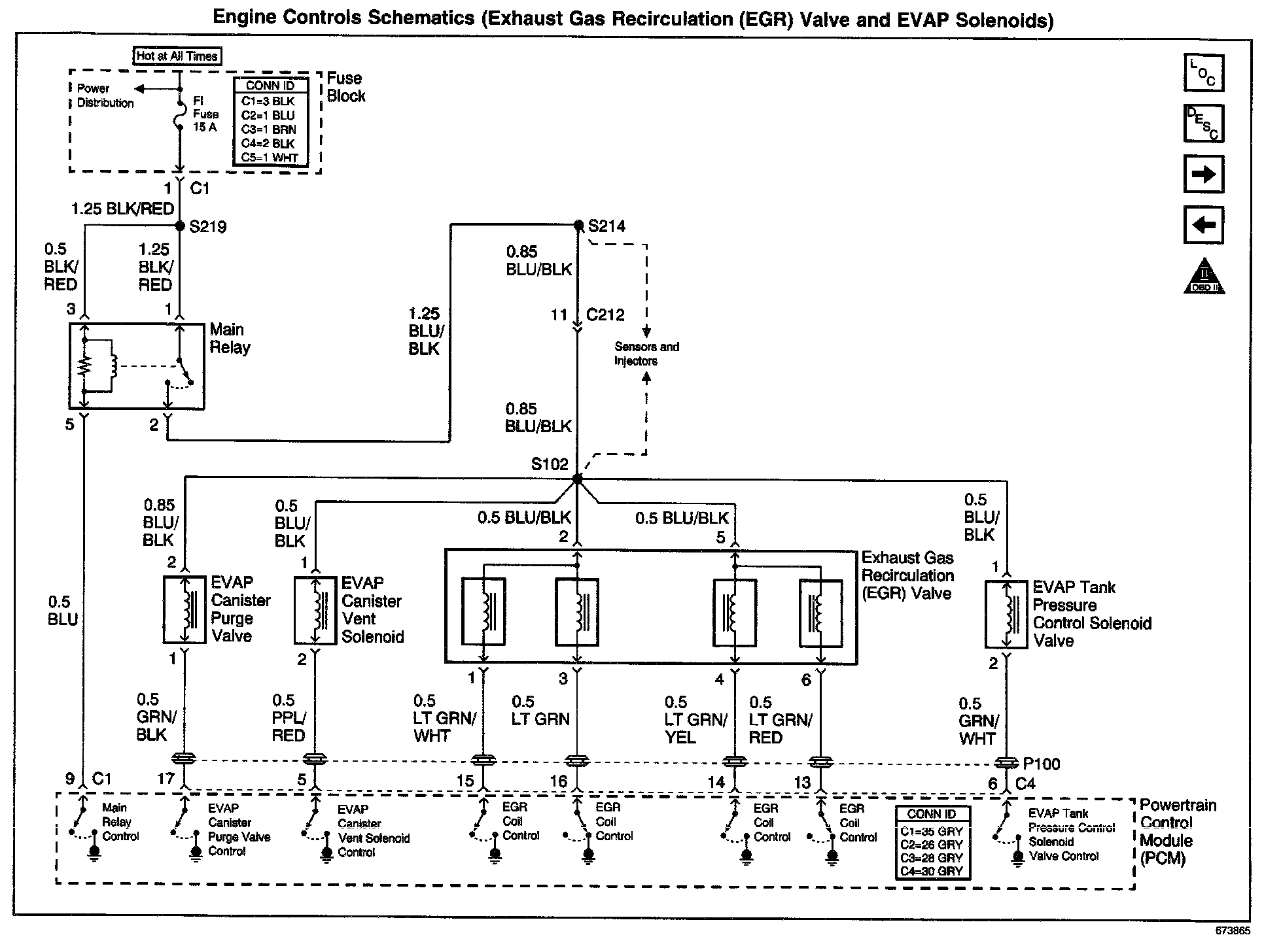 Engine Controls Schematics: Exhaust Gas Recirculation (EGR) Valve And EVAP Solenoids: