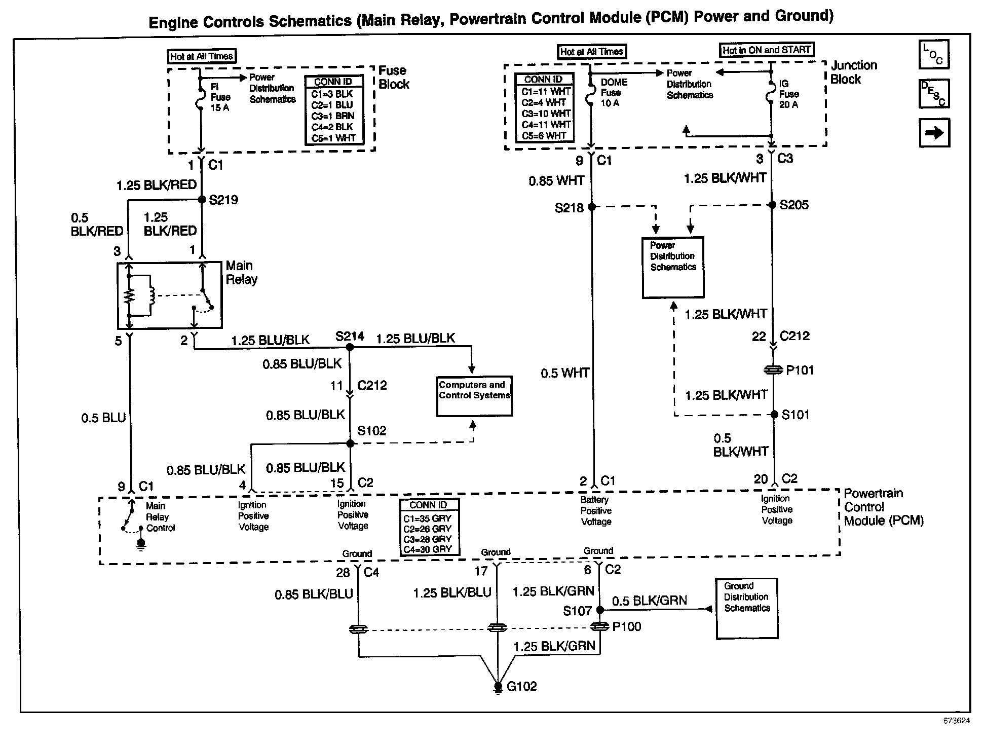 Engine Controls Schematics: Main Relay, Powertrain Control Module (PCM) Power and Ground: