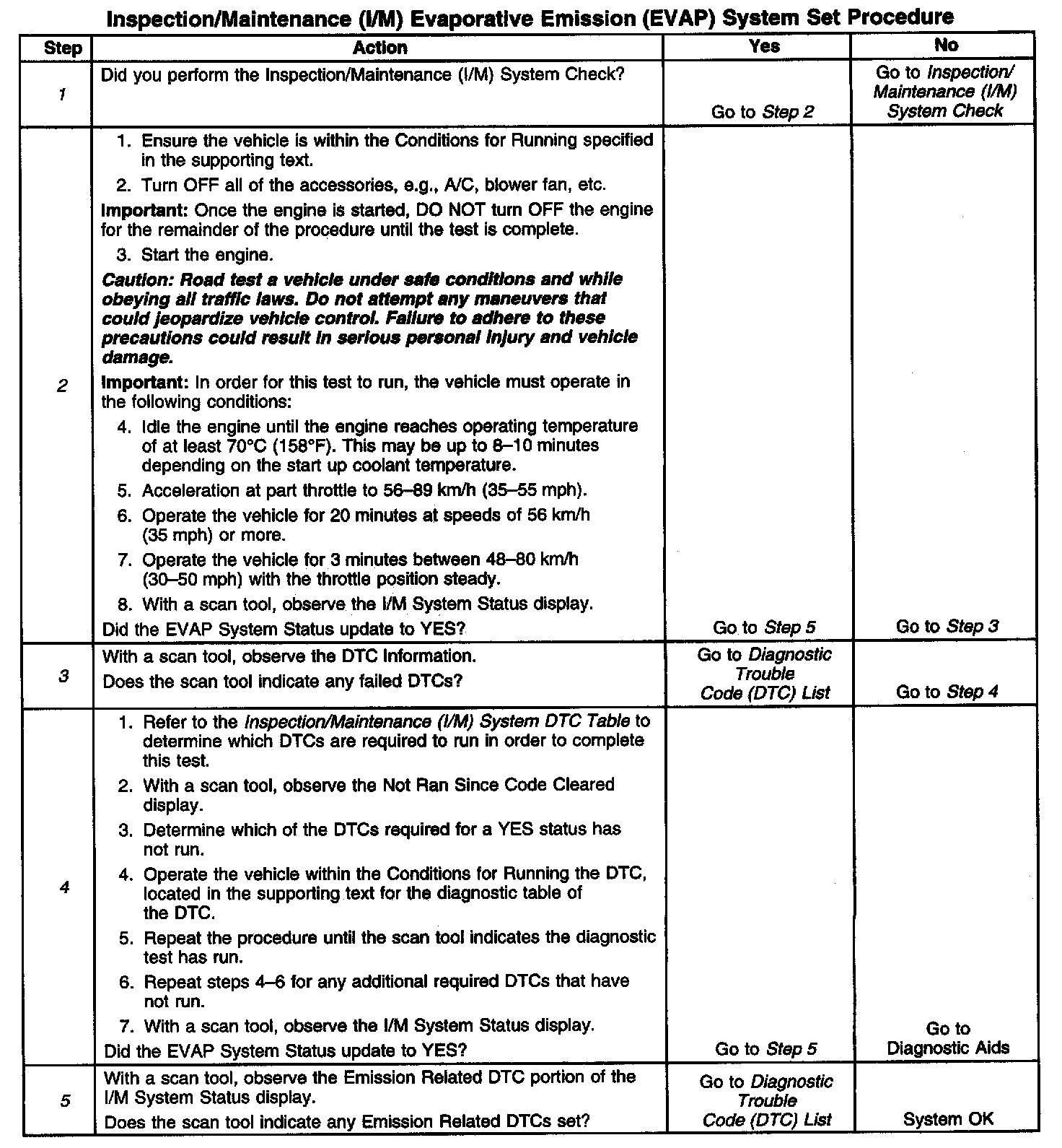 1. Make sure you perform the I/M System Check before performing this test. Failure to do so may result in difficulty updating the status to YES. Inspection/Maintenance (I/M) System Check