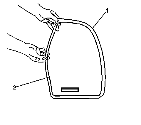 1. Install the rear side door stationary window weatherstrip (1) to the stationary window (2).
