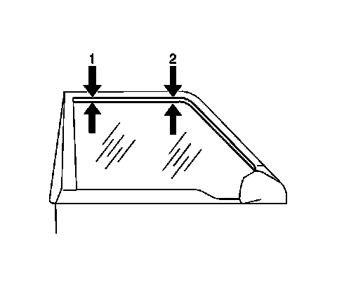 3. Adjust the door window so that the measurements between the window and the front side door frame are equal at the points (1, 2).