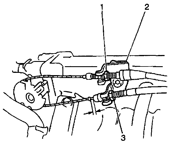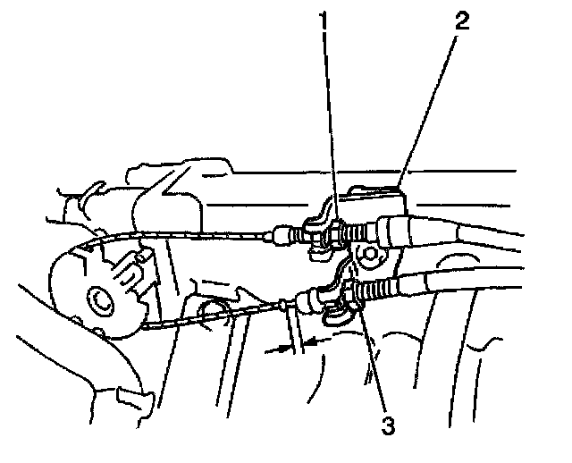 5. Remove the 1 bolt and the accelerator cable bracket (2) from the intake manifold.