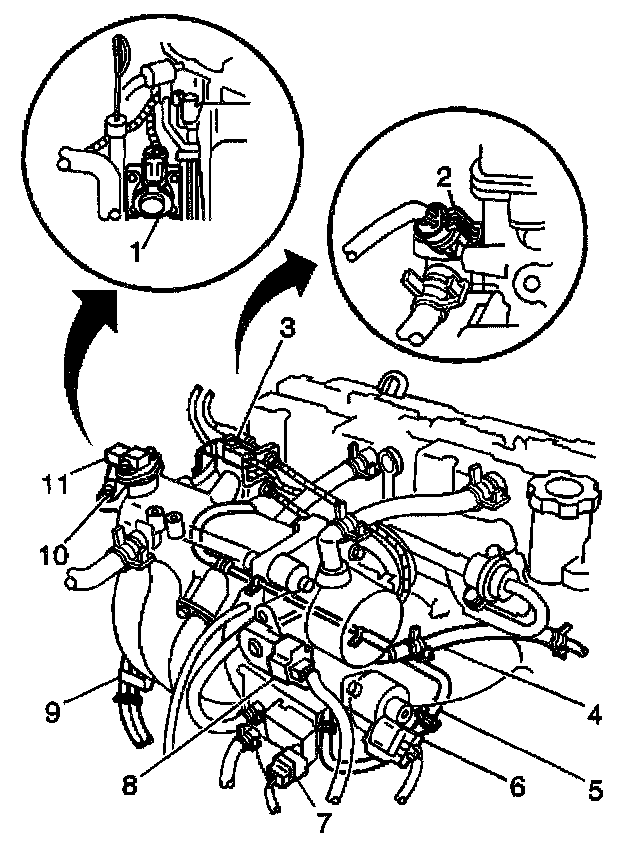 12. Install the EVAP canister purge valve to the intake manifold. Secure with 1 bolt.