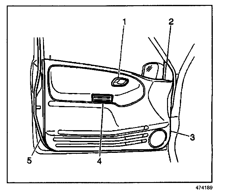2. Disconnect the outside rearview mirror electrical connector (1).