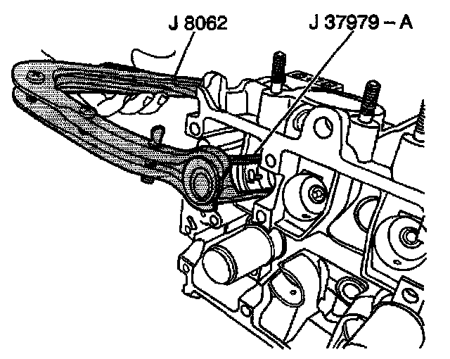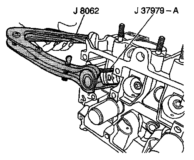 2. Compress the valve spring using the J 8062 and the J 37979.