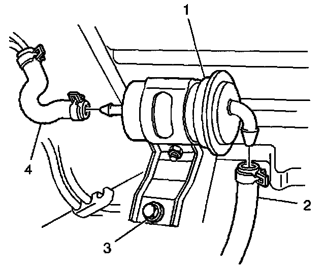 3. Secure the fuel filter bracket to the vehicle with the retaining bolt (3).