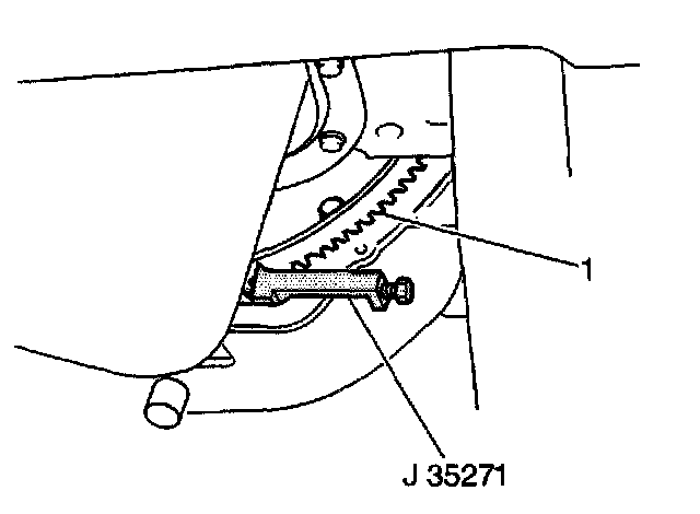 3. Install the flywheel retaining bolts to the crankshaft. Use the J 35271 to lock the flywheel.