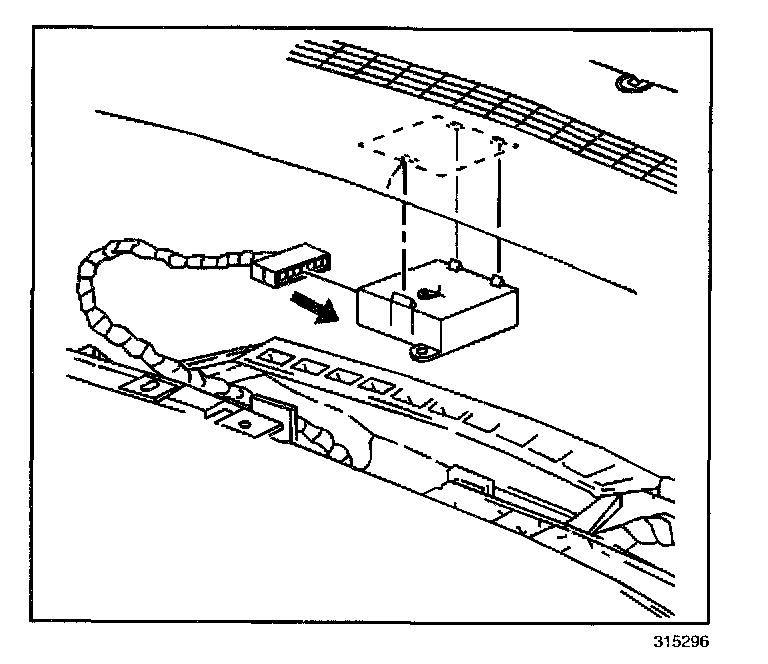 2. Engage the retaining tabs in order to install remote control door lock control receiver to the instrument panel upper trim.