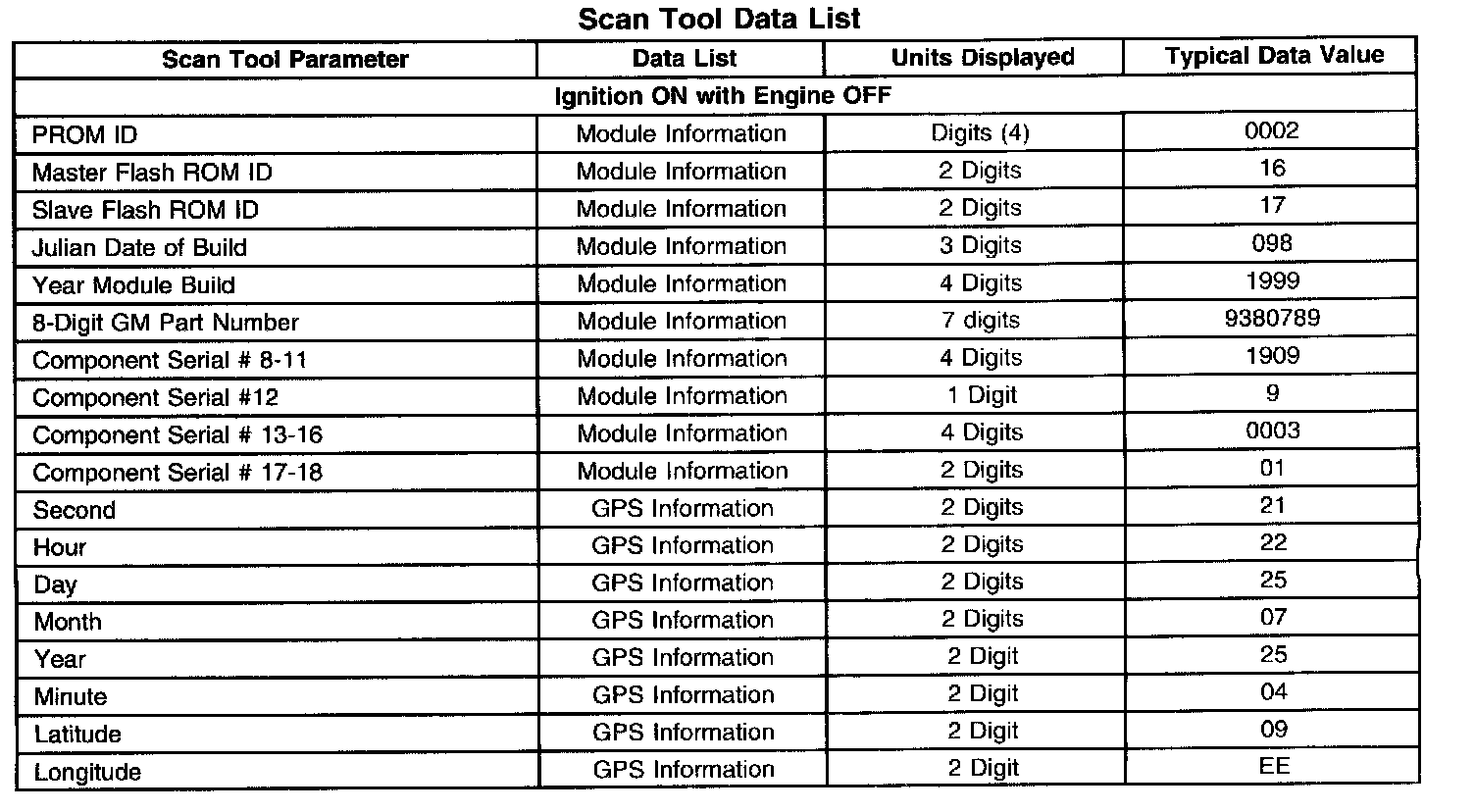 Scan Tool Data List: