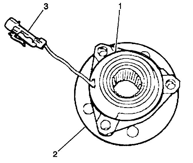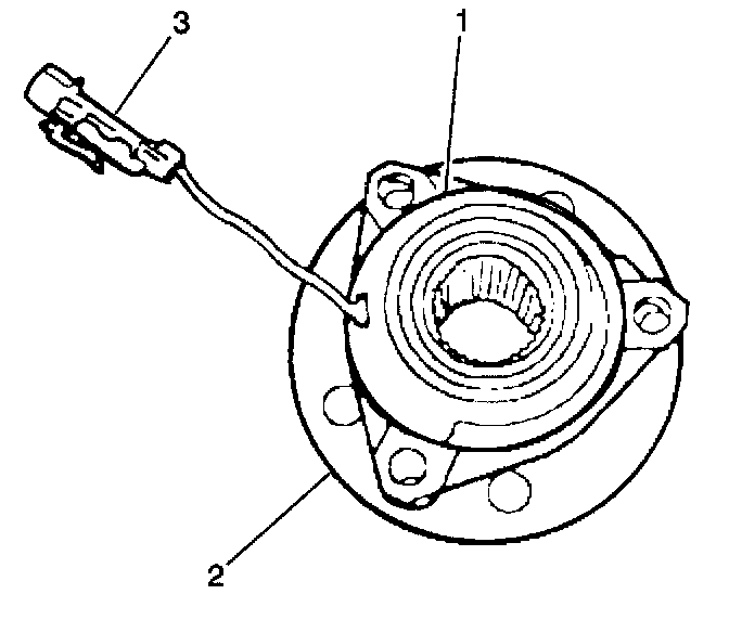 If a speed sensor or a ring needs replacement, replace the entire hub and bearing assembly. Do not service the harness pigtail individually because the harness pigtail is part of the sensor. Refer to Wheel Bearing/Hub Replacement - Front.