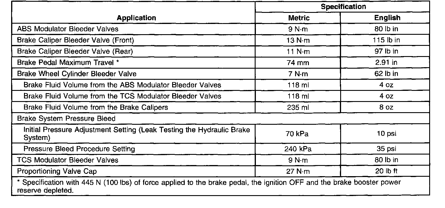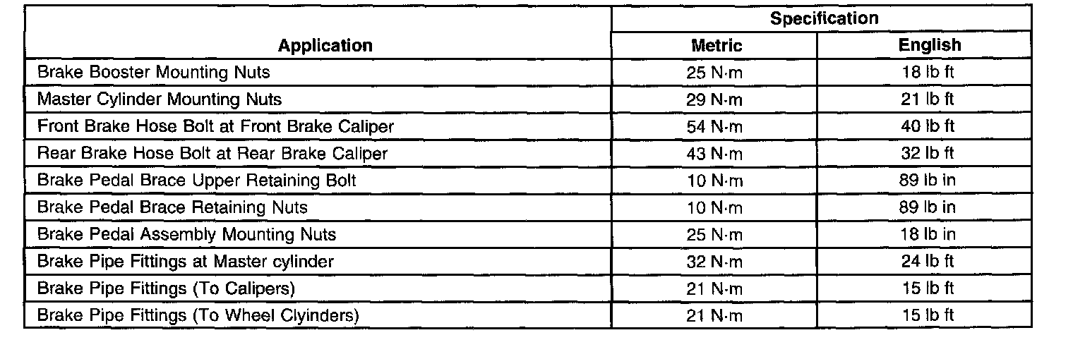 Tightening Specifications