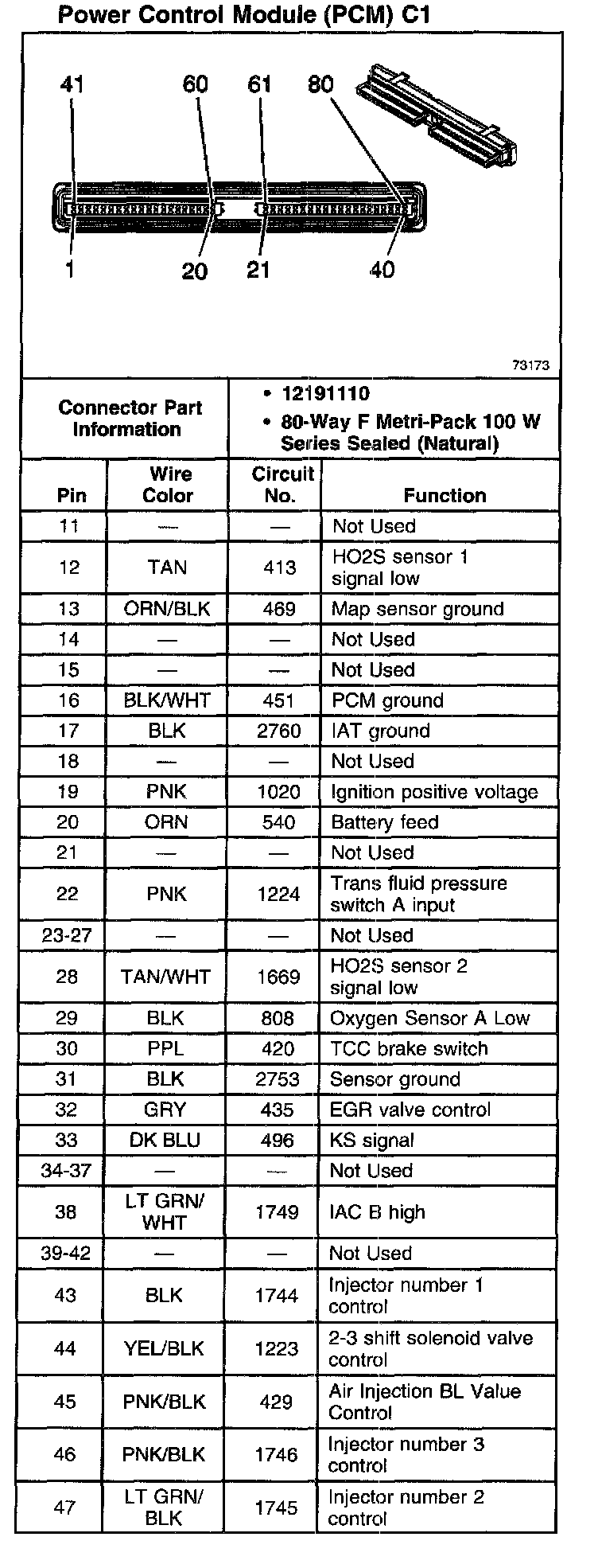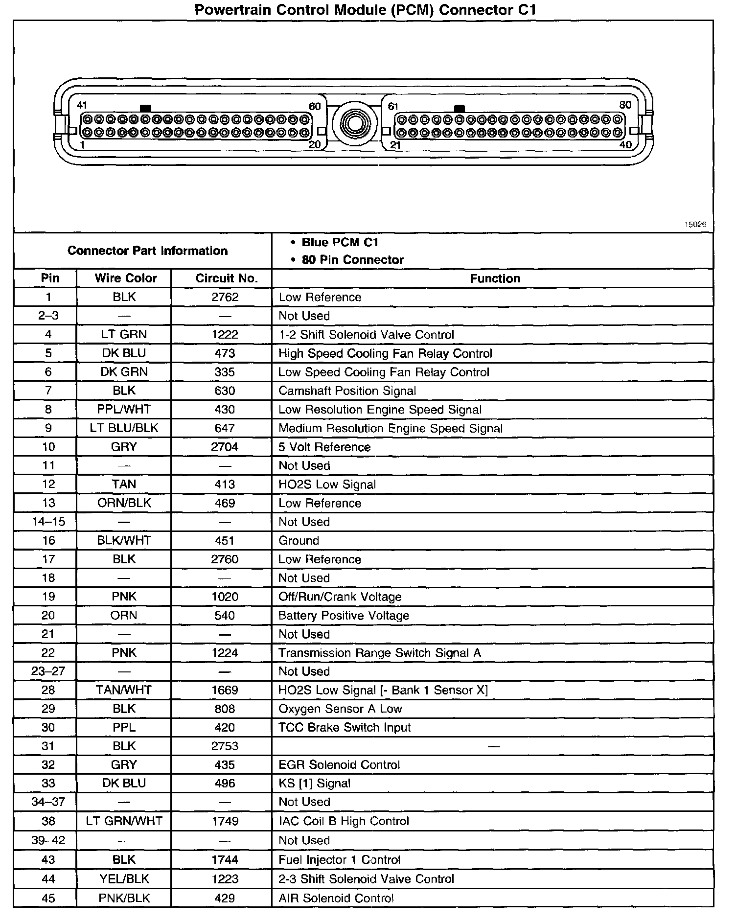 Powertrain Control Module (PCM) Connector C1 (Part 1 Of 2):