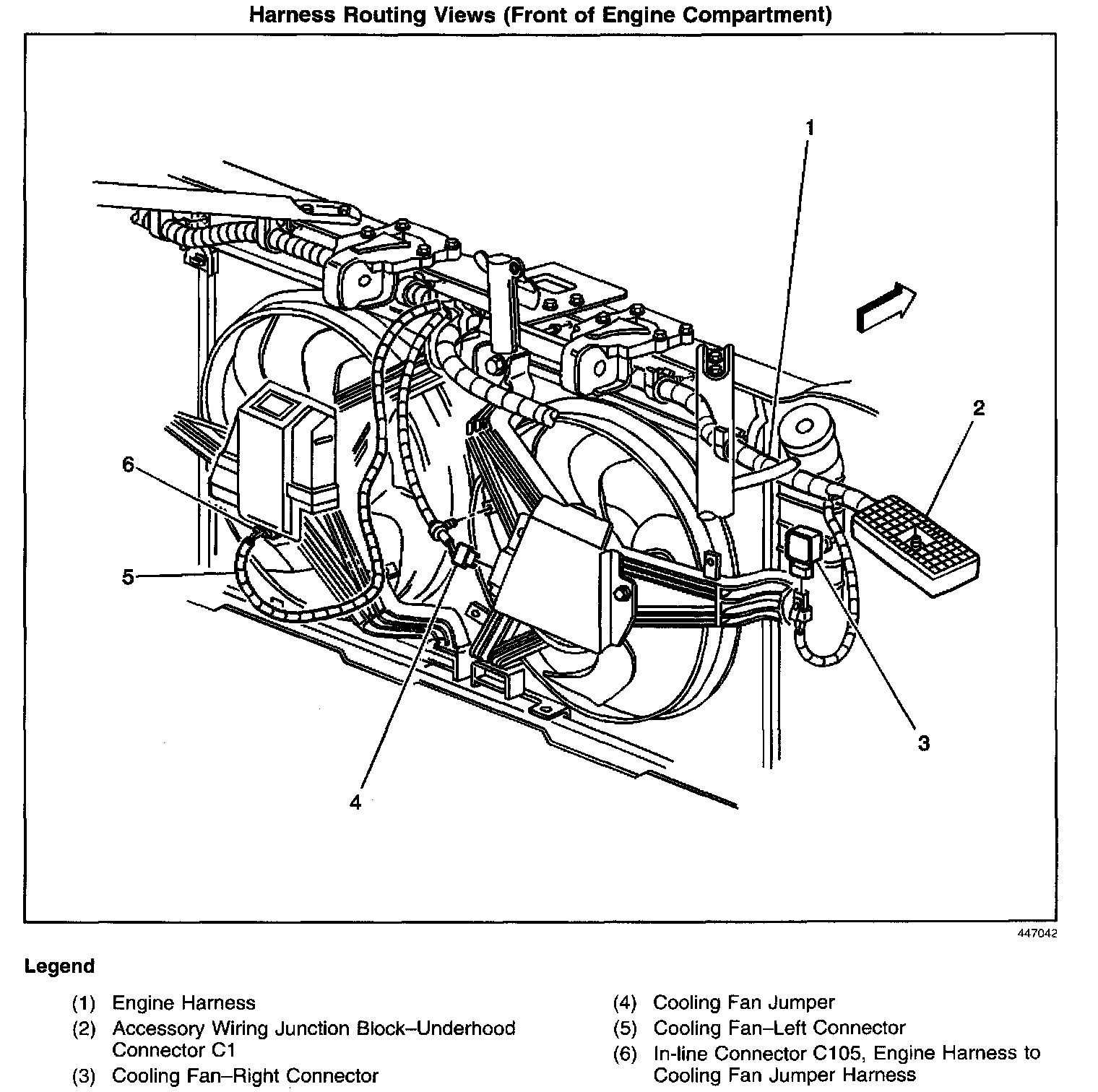 Harness Routing Views (Front of Engine Compartment):