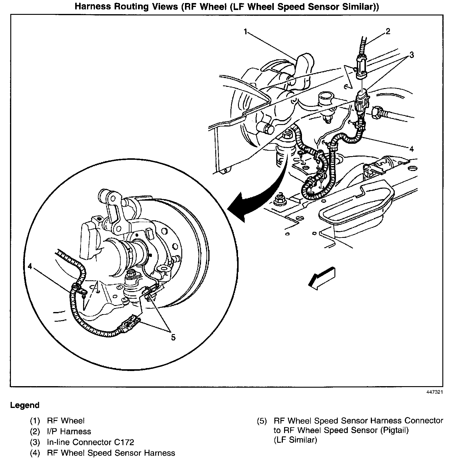Harness Routing Views (RF Wheel (LF Wheel Speed Sensor Similar)):