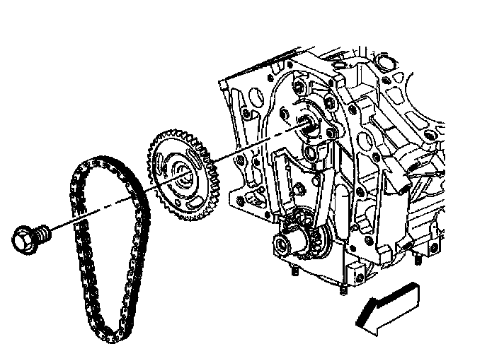 5. Remove the camshaft sprocket and timing chain.