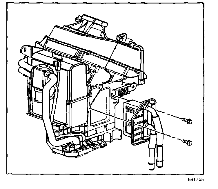 12. Remove the auxiliary heater core mounting screws.