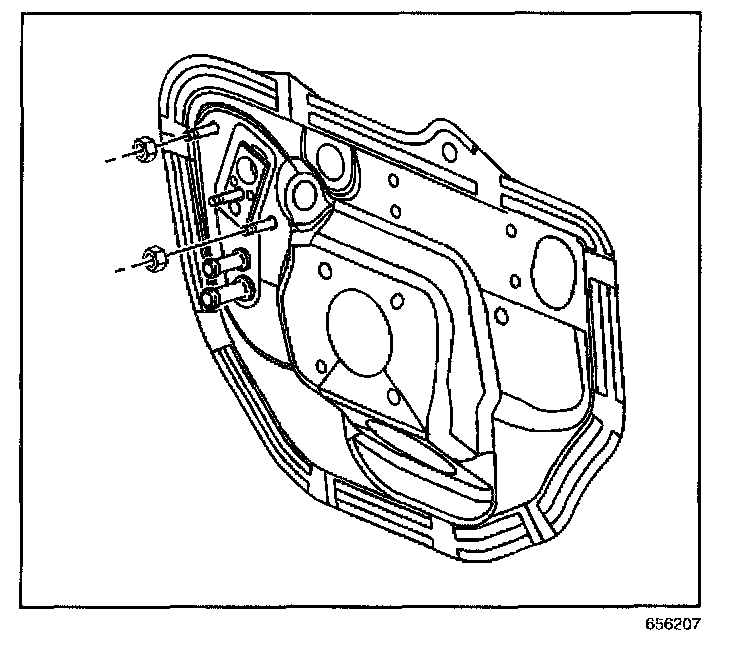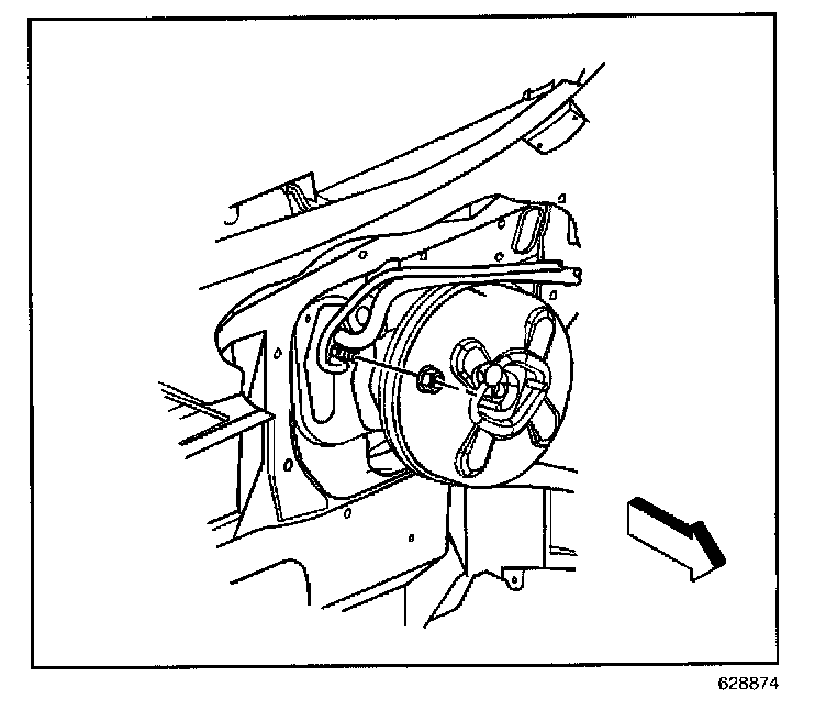 2. Install the HVAC module assembly to brake pedal bracket nuts.