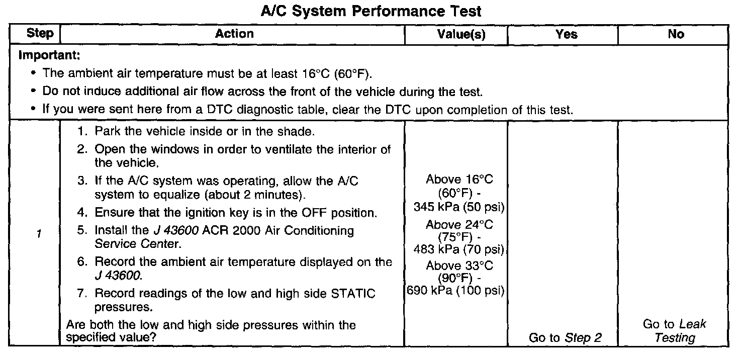 1. This step determines if there is enough refrigerant in the A/C system in order to operate the system without damage.