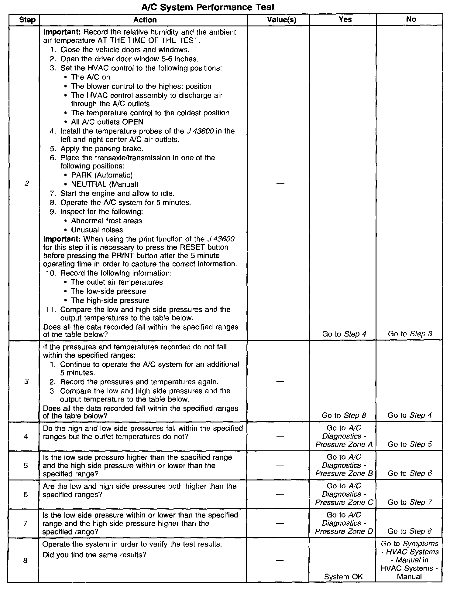 TEST DESCRIPTIONThe following test measures the A/C system operating efficiency by comparing: