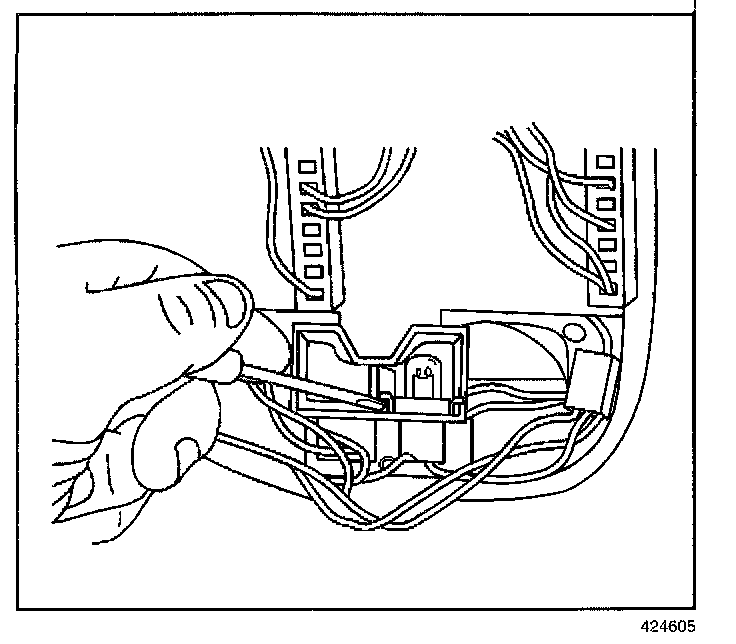 3. Use a small, flat-bladed tool to push one of the tabs on the reading lamp socket to release the socket from the housing.