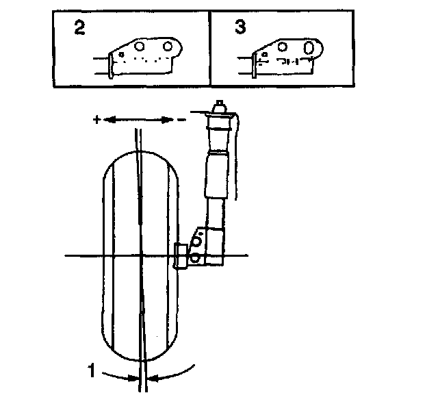 3. Remove the strut lower bolt in order to inspect for an oblong strut lower hole (3). If the strut lower hole is oblong, loosen the strut upper bolt in order to allow for camber adjustment.